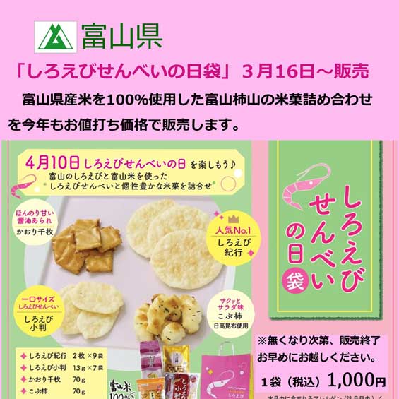 【富山県】しろえびせんべいの日袋販売(2026.03.16~)