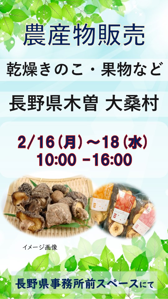 | 販売品 | 乾燥きのこ(椎茸・なめこ・えのき等)、新鮮野菜・果物など |