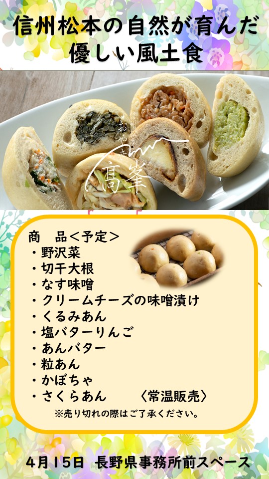 【長野県】松本市高峯 おやき販売 2026年4月15日(水) 10:00~16:00