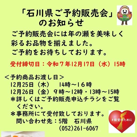 石川県ご予約販売会(~2025.12.17 15時受付締切)