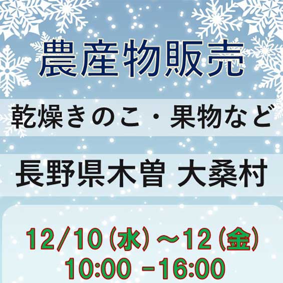 【長野県】長野県木曽 大桑村 乾燥きのこ・新鮮野菜 農産物販売(2025.12.10~12.12 10:00~16:00)