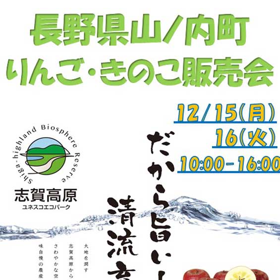 【長野県】長野県山ノ内町 りんご・きのこ販売会(2025.12.15~12.16 10:00~16:00)