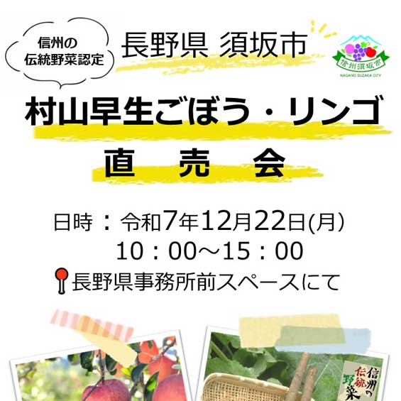 【長野県】長野県須坂市 村山早生ごぼう・リンゴ直売会(2025.12.22 10:00~15:00)
