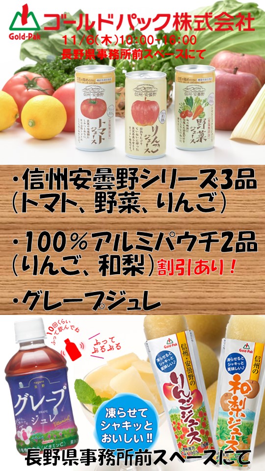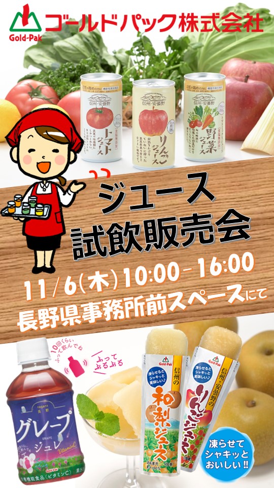 【長野県】ジュース試飲販売会 2025年11月6日(木) 10:00~16:00