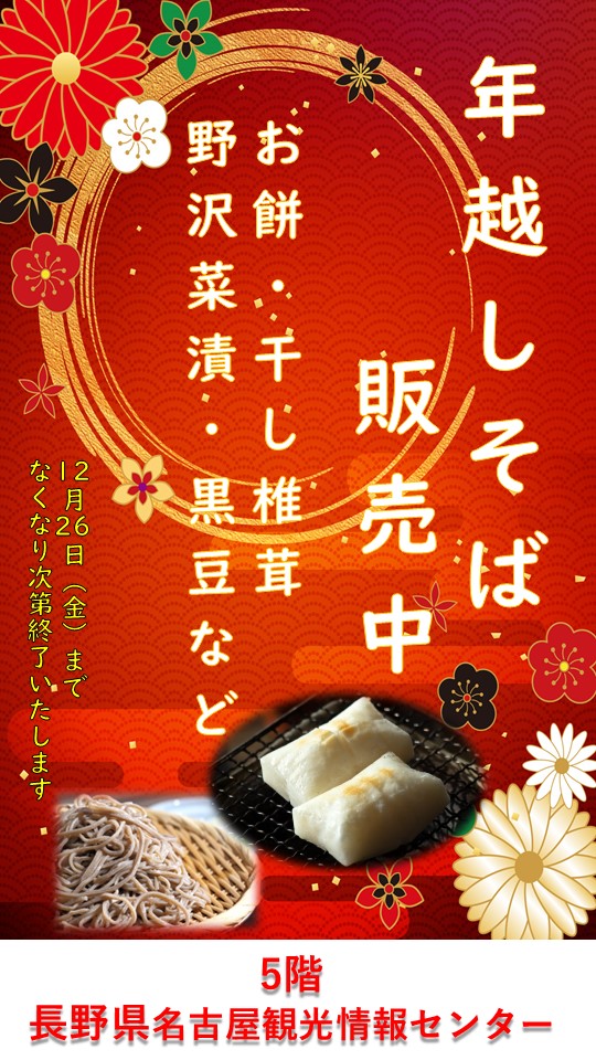 2025.12.18 【長野県】年越しそば販売中2025年12月26日(金)まで[なくなり次第終了いたします] 日時 2025年12月26日(金)まで[なくなり次第終了いたします] 会場 5階 長野県名古屋観光情報センター