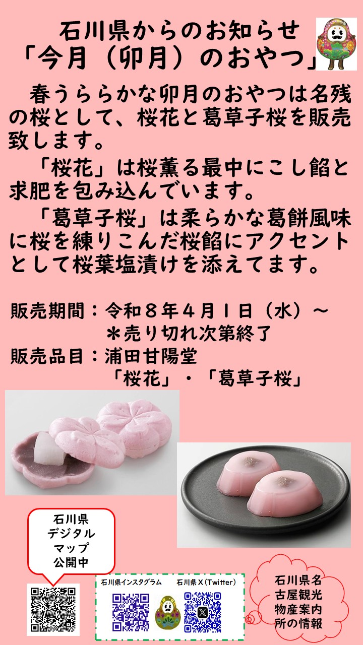 【石川県】今月(卯月)のおやつ 2026年4月1日(水)~