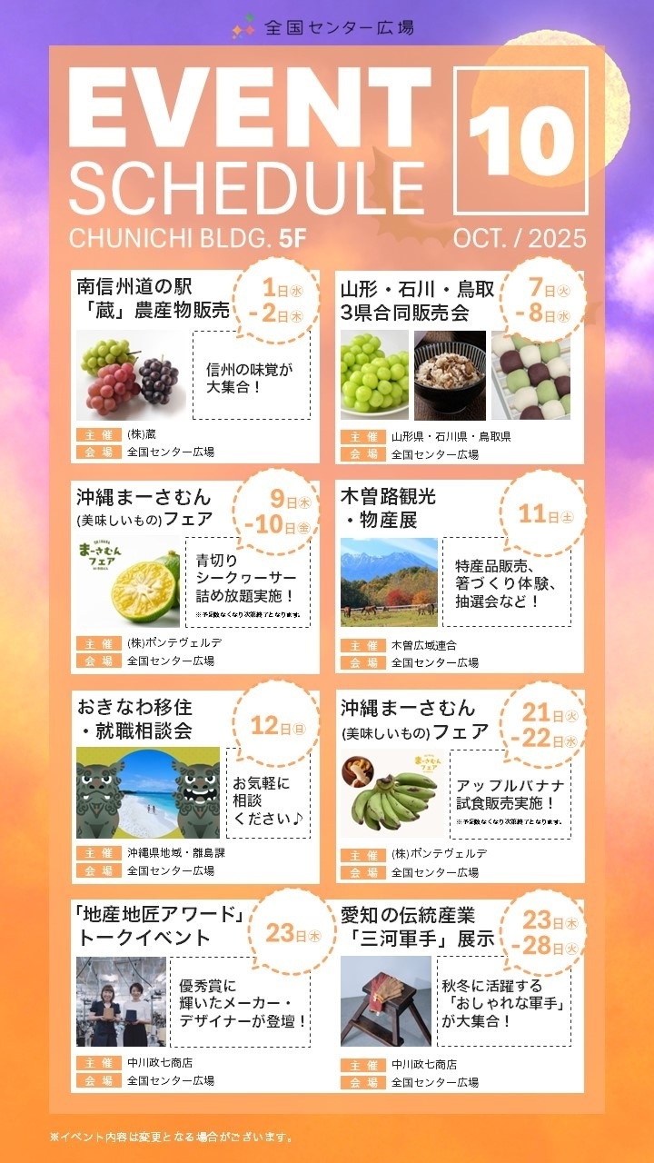 2025.09.30 全国センター広場2025年10月度 イベント 2025年10月イベント案内 PDFファイル 2025年10月 EVENT SCHEDULE - CHUNICHI BLDG.(1MB)
