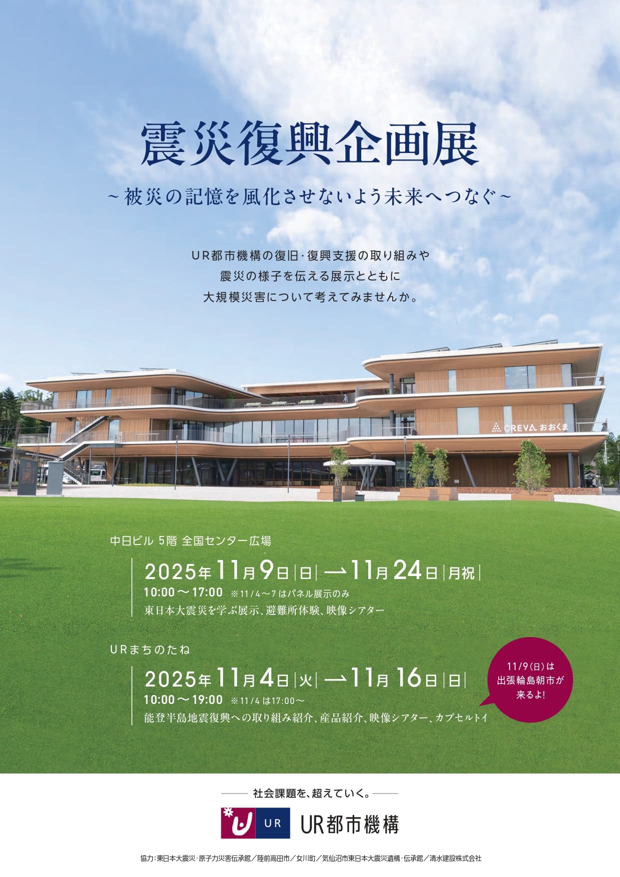 UR都市機構の復旧・復興支援の取り組みや、震災の様子を伝える展示とともに、大規模災害について考えてみませんか。