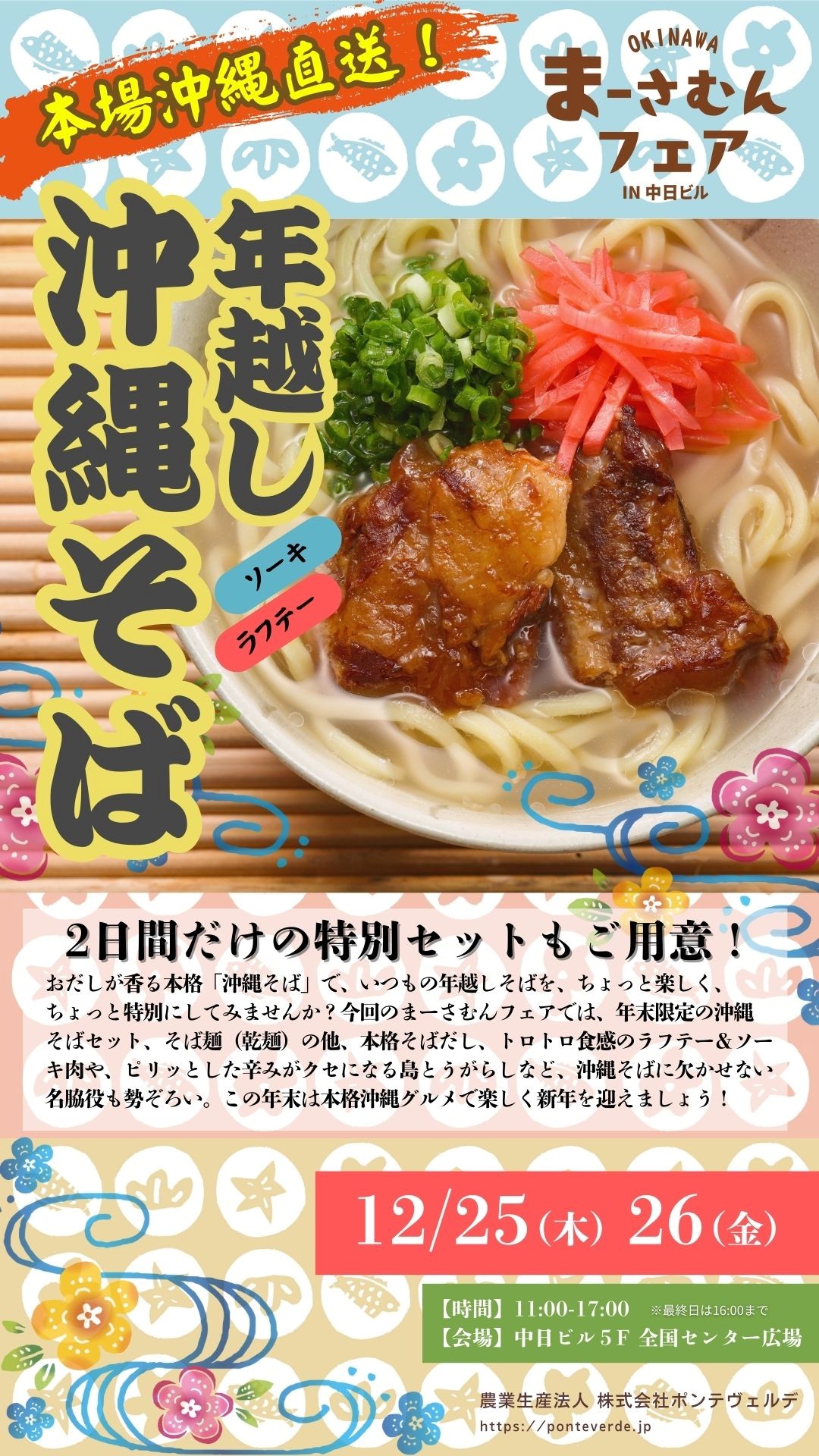 おだしが香る本格「沖縄そば」で、いつもの年越しそばを、ちょっと楽しく、ちょっと特別にしてみませんか?今回のまーさむんフェアでは、年末限定の沖縄そばセット、そば麺(乾麺)の他、本格そばだし、トロトロ食感のラフテー&ソーキ肉や、ピリッとした辛みがクセになる島とうがらしなど、沖縄そばに欠かせない名脇役も勢ぞろい。この年末は本格沖縄グルメで楽しく新年を迎えましょう!