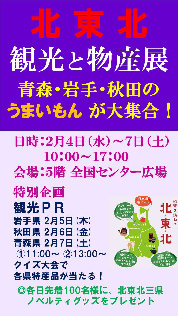 北東北 観光と物産展 2026.02.04(水)~02.07(土) 10:00~17:00